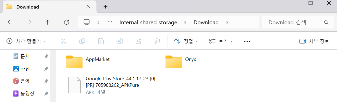 3) Download 폴더에 설치한 구글 앱 파일을 옮겨줍니다.
