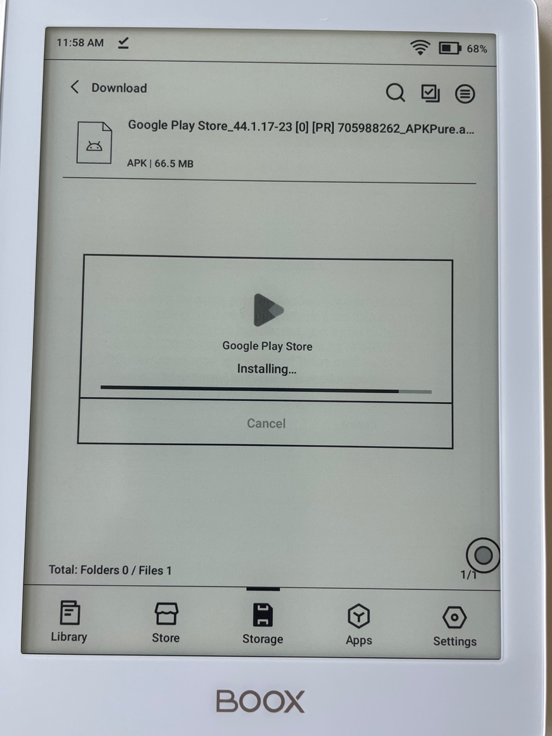 4) 기기의 다운로드 폴더에 있는 파일을 설치합니다. 다운로드가 완료되면 "Apps"에 "Play Store"를 확인할 수 있습니다.