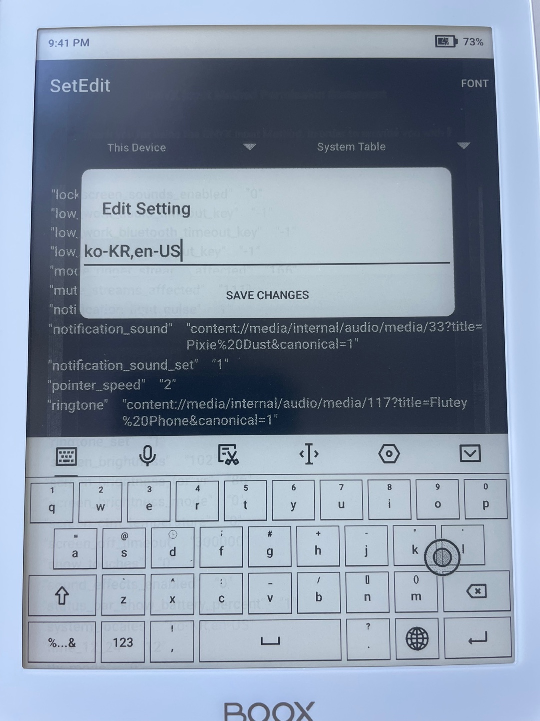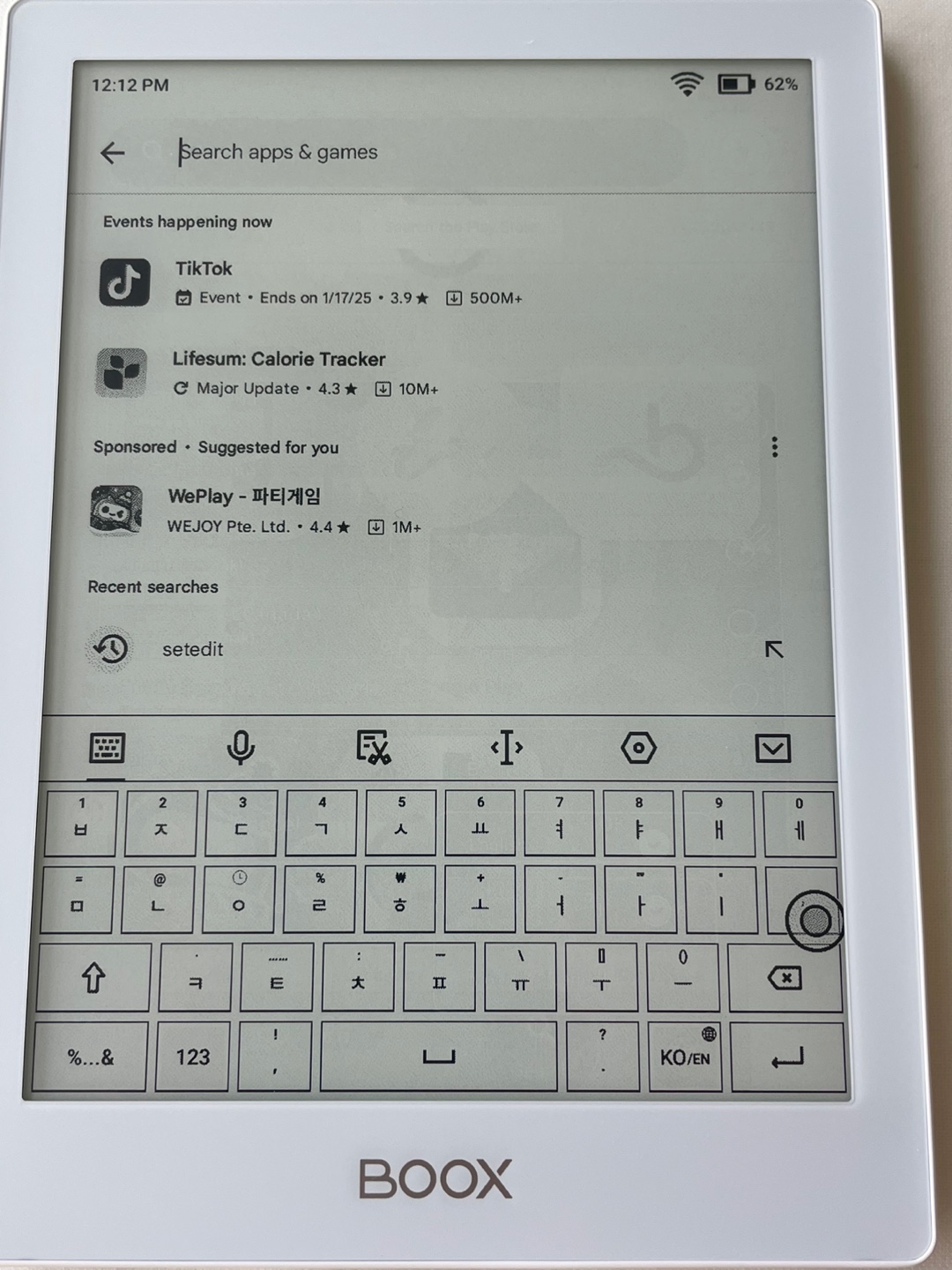 이렇게 한글화가 되었으면 키보드 설정에서 한글을 추가합니다. 이후 평소 사용하는 이북앱을 다운로드받아서 이용하면 됩니다.
