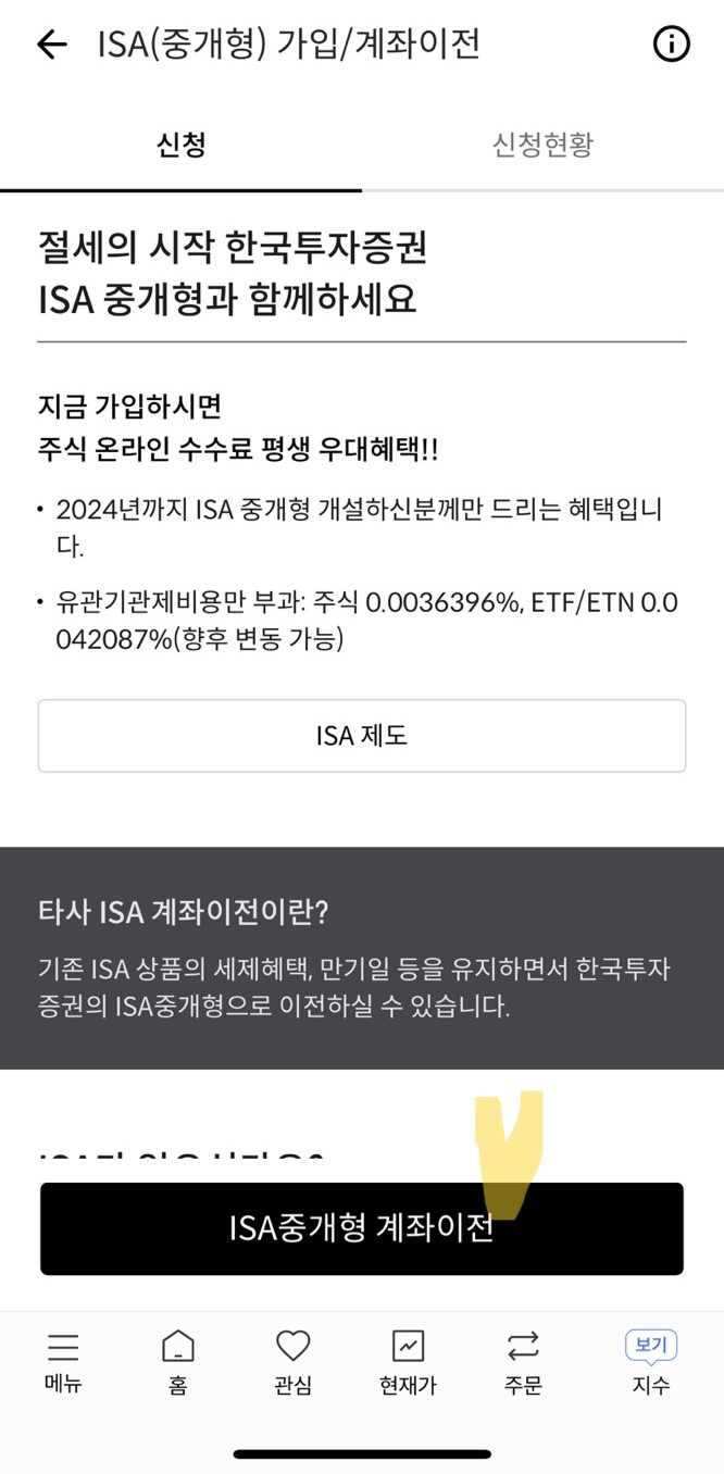 2) 화면 아래의 ISA중개형 계좌이전을 클릭하면 계좌이전과 신규 가입이 가능합니다.