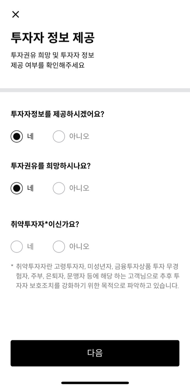 7) 투자자 정보 확인 및 투자 성향 분석 절차를 마치면 계좌 개설이 완료됩니다.