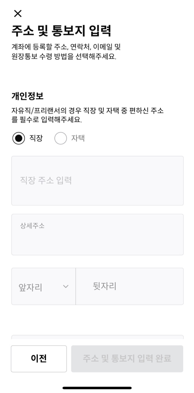 6) 그리고 신분증 촬영과 본인 인증이 이어진 뒤 개인 정보를 입력합니다. 이때 본인 계좌 인증이 이루어집니다.
